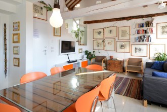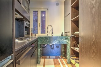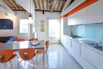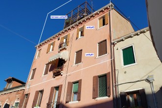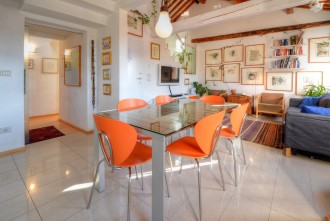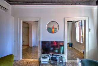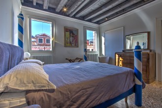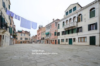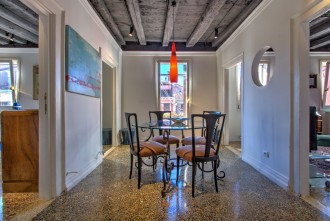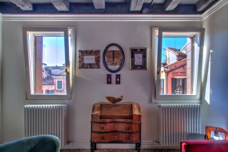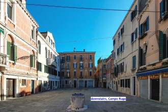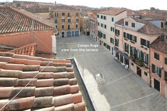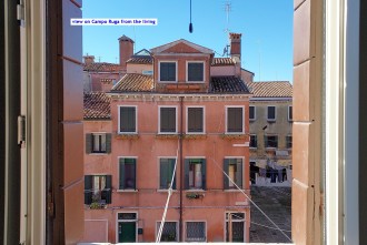 - 67 sqm about, self-catering apartment - wooden-beam ceiling, marble floors, original Terrazzo Veneziano marble flooring, 5 windows with view on Campo Ruga