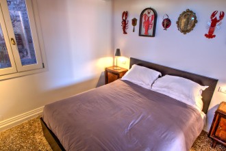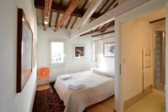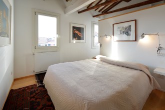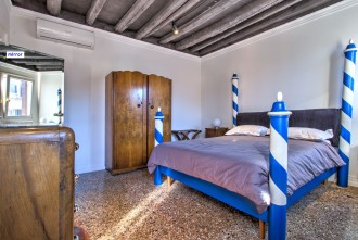 - stylish single bedroom#1: a double bed (not twins), 2 windows with view on Campo Ruga, 2 bedside tables, chest of drawers, wardrobe, original Terrazzo Veneziano marble flooring