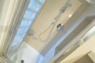 - stylish bathroom #1: a window, shower, washbasin with mirror, bidet, WC