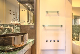 - marble bathroom: washbasin with mirror, a window, shower, bidet, WC, marble floors, washing machine, dryer