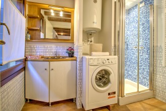 - salle de bain: une fenêtre, douche, lavabo avec miroir, bidet, WC, sèche-cheveux, machine à laver, chaudière électrique