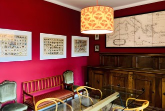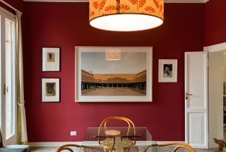 - stylish dining room: a window, original furniture, glass table, chairs, armchairs
